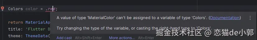 另外,在内置的 Color 和 Colors 场景也不适用,这类场景下,因为它们的静态类型和本身的类型并不是同一个,所以也会出现无法简化的情况: