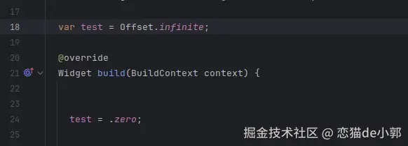 如果回到 Flutter 场景下,那就是如下代码所示,不管是各类 Flex 控件的 Axis ,还是类似 Offset 等的 Zero ,以后都可以通过如 .zero 、.center 来实现简化写法: