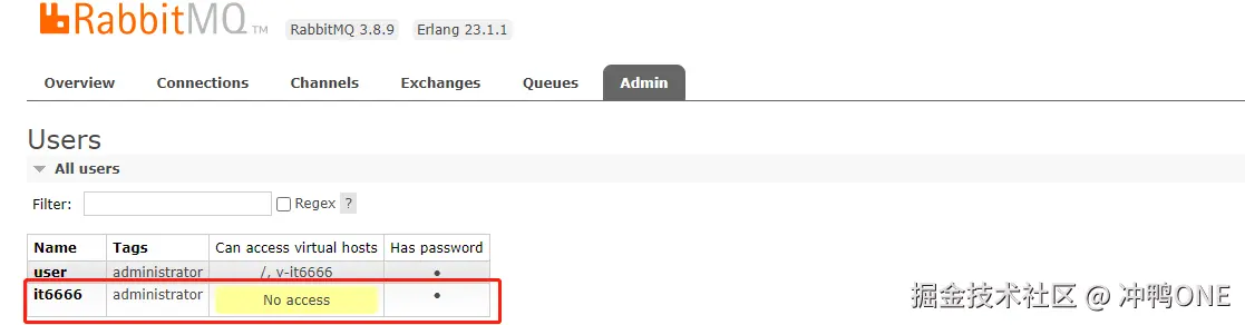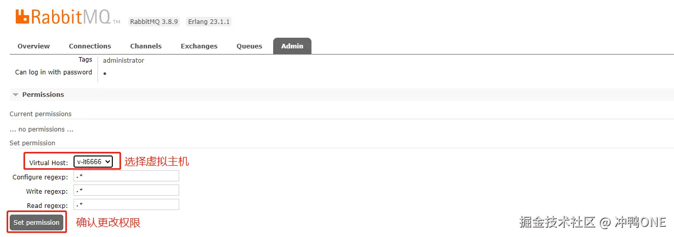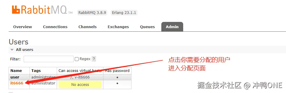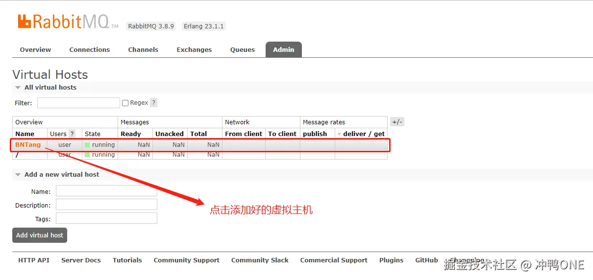 创建好虚拟主机,我们还要给用户添加访问权限 点击添加好的虚拟主机: