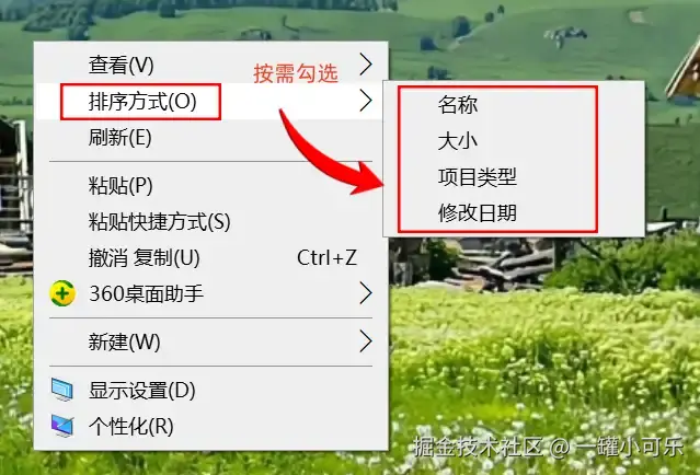 电脑桌面图标部分不见了怎么回事?可能是桌面图标布局设置被误操作了。电脑桌面图标部分不见了?操作步骤:同样在桌面空白处点击鼠标右键,选择 “排序方式” 。你会看到有按名称、大小、项目类型、修改日期等几种排序方式。你可以依次点击这些排序方式,取消 “自动排列图标” 选项。