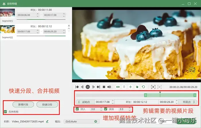 步骤3:录制结束后,如果还需要进行后期编辑操作,那就点击 “高级剪辑” 工具,对视频进行如快速分段、增加特效等后期操作。