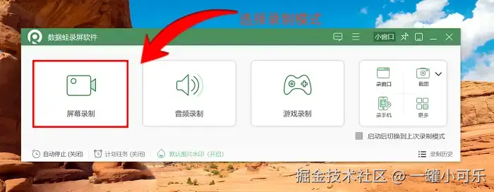 步骤1:点击打开数据 蛙录屏软件,在主页面找到合适的录制模式。本文会以 “屏幕录制” 为例给大家进行讲解。