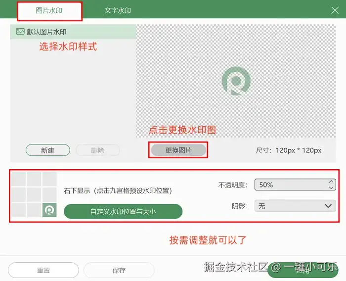 步骤2:调整好需要录制的区域和音频源后,还可以打开 “图片水印” 进行录制。调整好后,点击 “开始录制” 按钮就可以录制视频了。