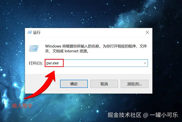 步骤2:在打开后,输入 “psr.exe” ,完成后按回车键打开步骤记录器,点击 “开始记录” 之后,对电脑进行的相关操作都会被这个小工具记录下来。