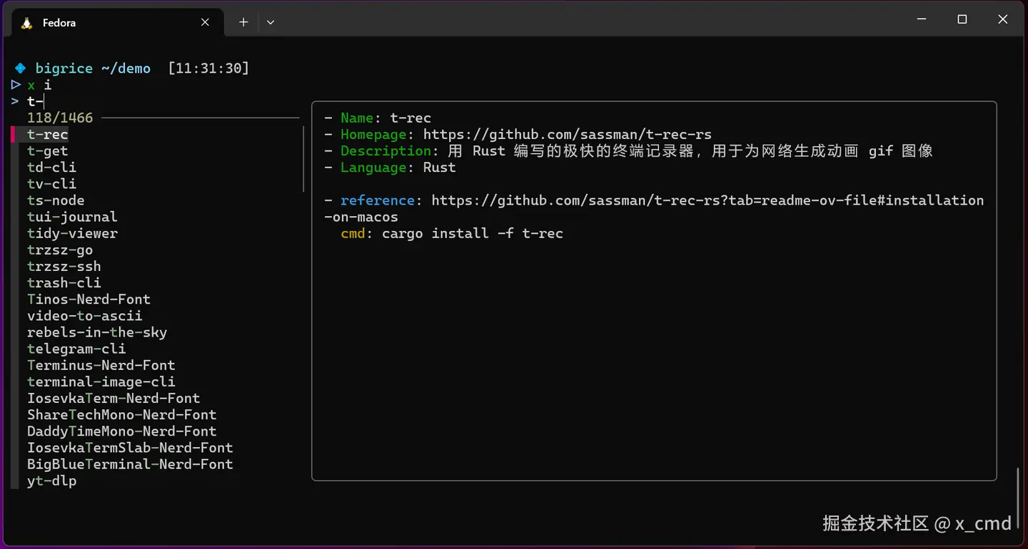 t-rec 是一款强大的终端录制工具,它能将你的终端操作过程完美地记录下来,并生成为 GIF 动画或 MP4 视频。无论你是想分享你的命令行技巧,还是制作生动形象的教程,t-rec 都能帮你轻松实现。