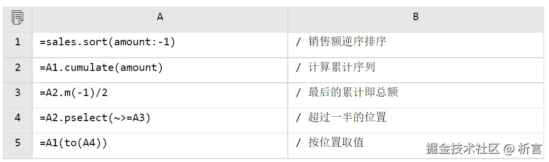 比如:找出销售额占到一半的前 n 个客户,并按销售额从大到小排序。SQL 写出来是这样的: