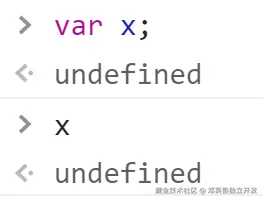可以看到,变量 x 的值是 undefined。