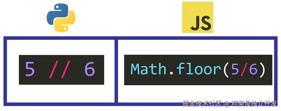 大多数算术运算符在 Python 和 JavaScript 中的用法完全相同,Floor Division 运算符却略有不同。