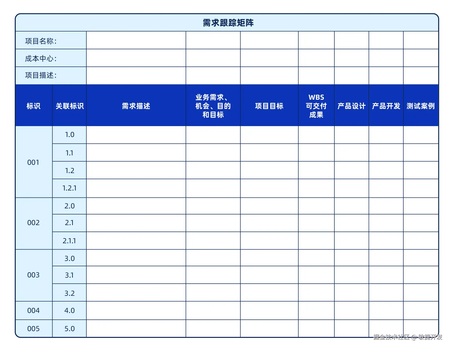 简单来说,就是用来管理需求和验证需求是否已经实现的一个表格工具,其核心作用就是**“跟踪”**,防止需求被遗留或者曲解。
