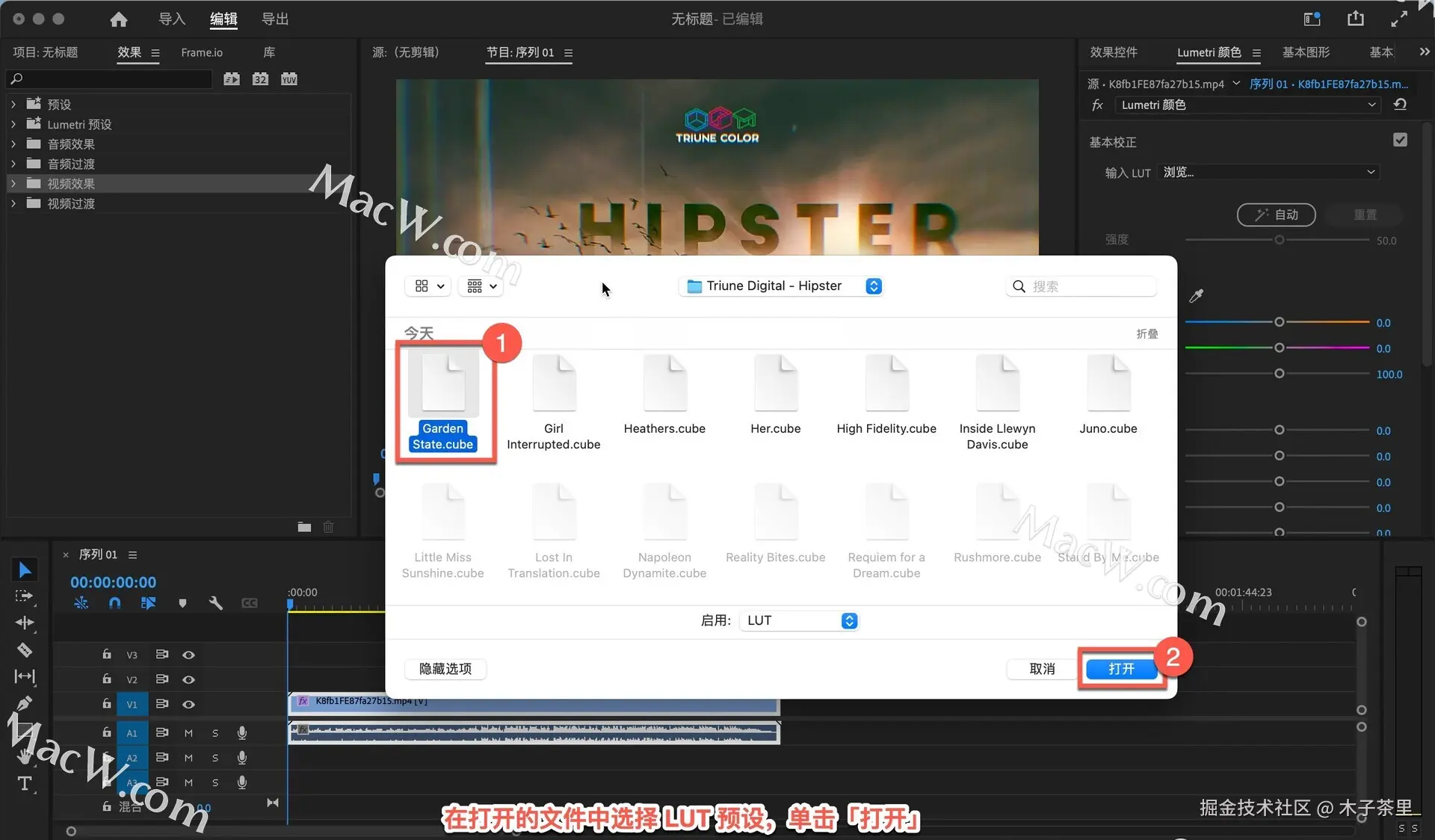 在打开的文件中选择 LUT 预设,单击「打开」。