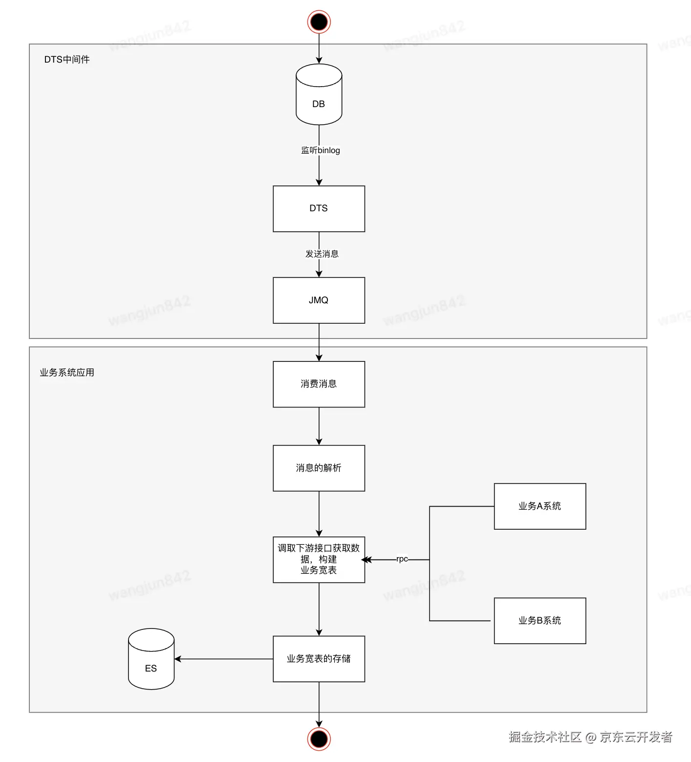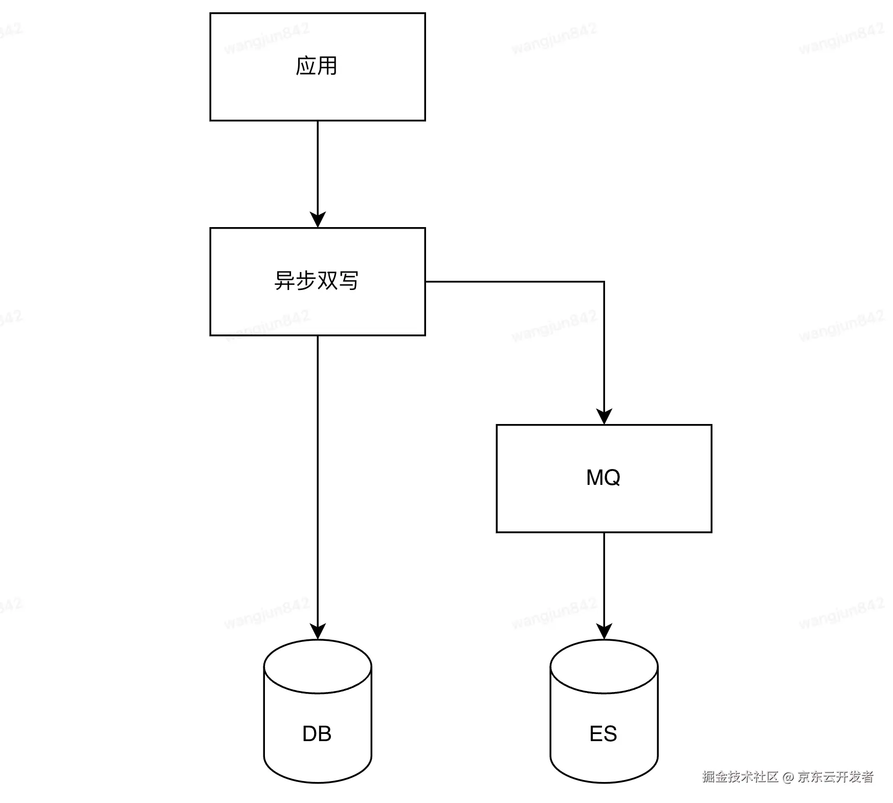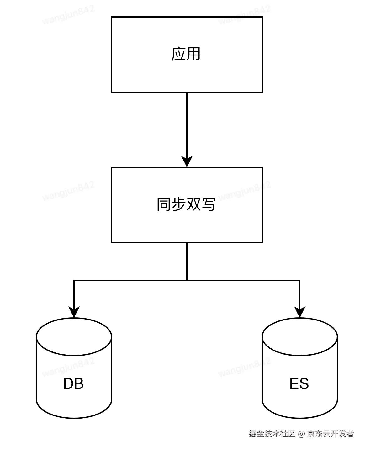 应用在接收到写请求后,同步写DB成功,然后再同步写ES。