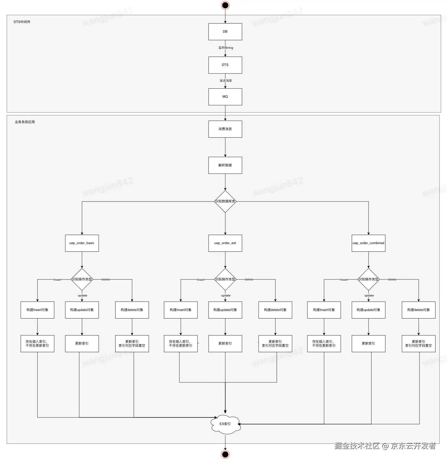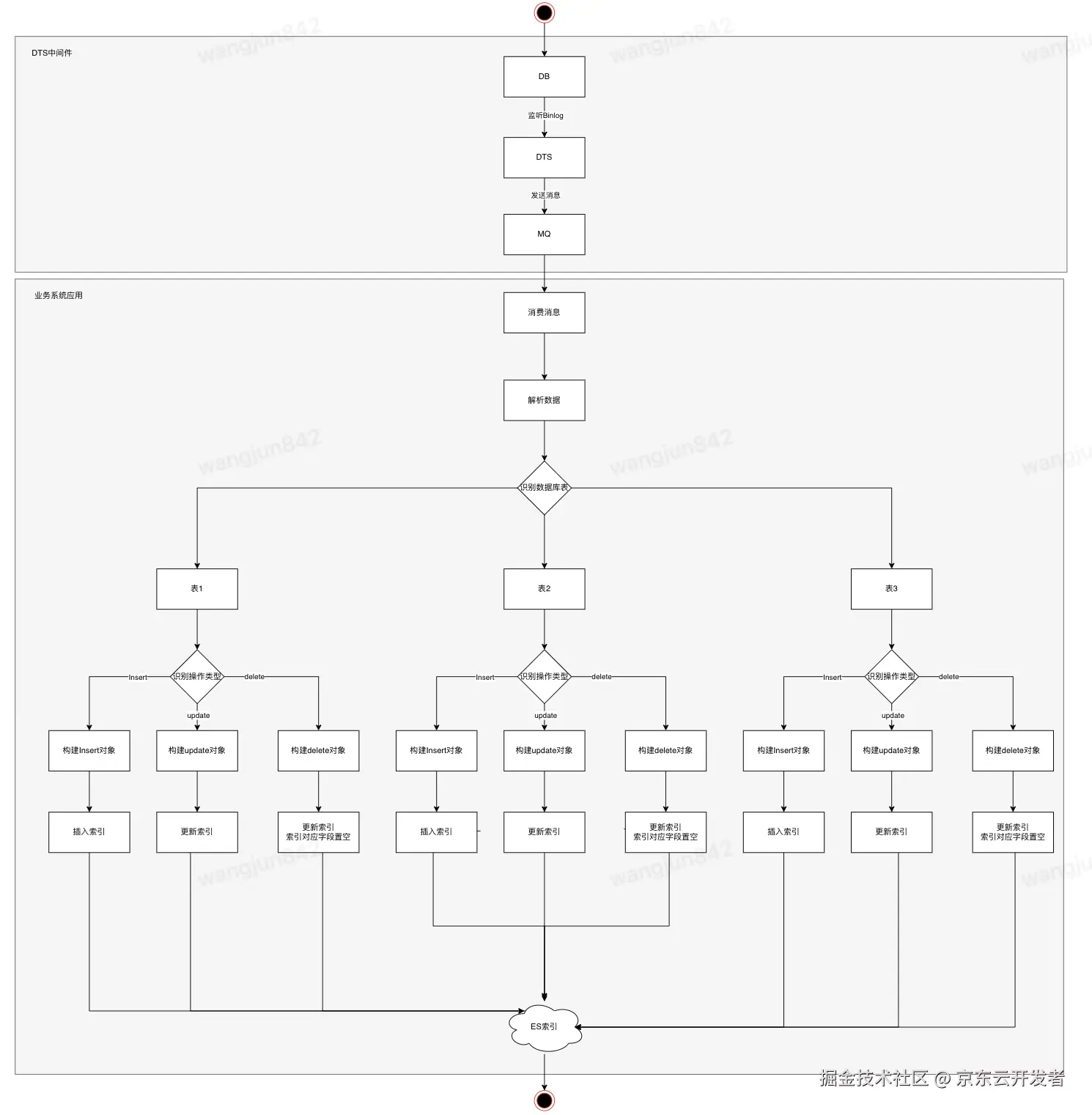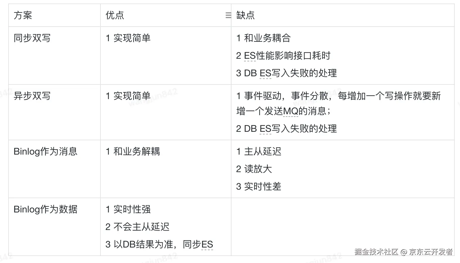 应用在接收到写请求后,同步写DB成功,异步发送MQ,消费MQ异步写ES。