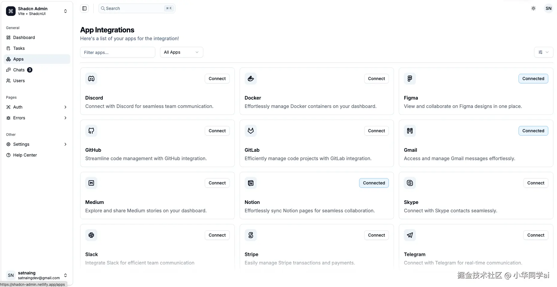 "基于 Shadcn UI 和 Vite 打造的现代化管理后台,开箱即用的响应式设计 + 无障碍访问,让后台开发从未如此优雅!" —— 来自 GitHub 7.6K 星认证