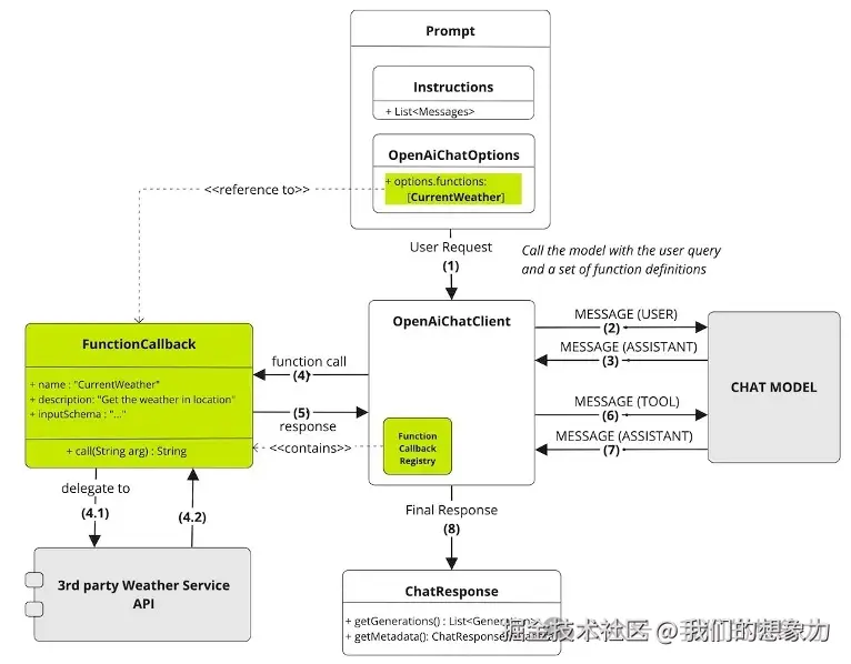举例利用Spring AI 解决在文章最开头查询天气的问题: