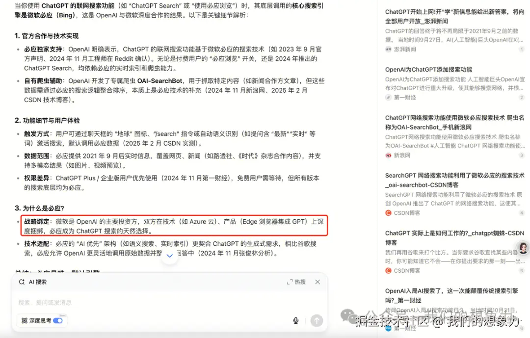 引出思考,不少人会认为做应用风向很高,模型本身的大幅提升会导致应用直接被弃用,就好比有了很好的头脑后,我们身上很多器官会退化,就没有必要造肉身翅膀,因为我们有飞机、火箭、飞船了。就好比,深度研究,如果下一代模型本身是六边形的全专家模式,具有各种各样的能力,包括MCP协议的各种外部能力调用,包括深度研究能力,是否还有必要再去一个深度研究?这是专才还是博学的哲学问题。这就是早期学术型较重时候的OpenAI,现在OpenAI这么多人,有不少人是在做应用层面的开发,这也会有很多工程的价值,让用户体验更加丝滑顺畅。