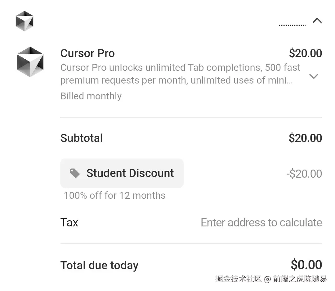 验证通过后,就可以 0 元获得 12 个月的 Cursor Pro 使用权限啦。