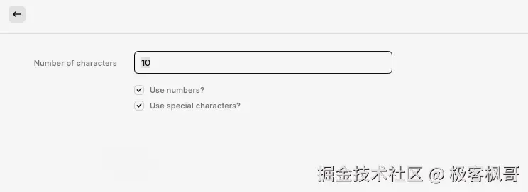 可以进行密码的长度配置,默认是 10 位,以及是否包含数字,特殊字符。