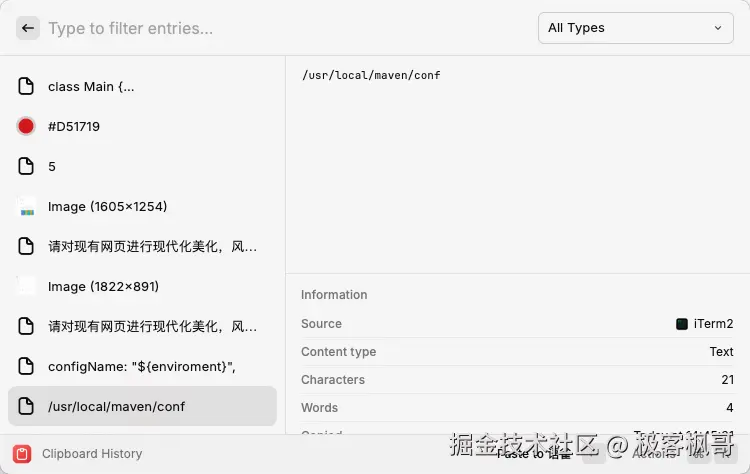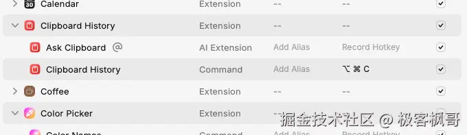 这里我设置了快捷键是 option + command + c,和之前使用 alfred配置的一样,可以直接唤起剪切板弹窗。