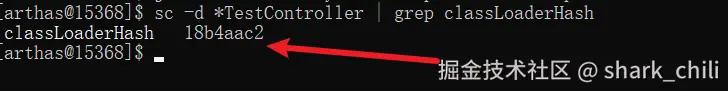 知道了代码的位置之后,我们根据类的包路径com.example.arthasExample.TestController直接通过Arthas反编译查看源码,命令如下:
