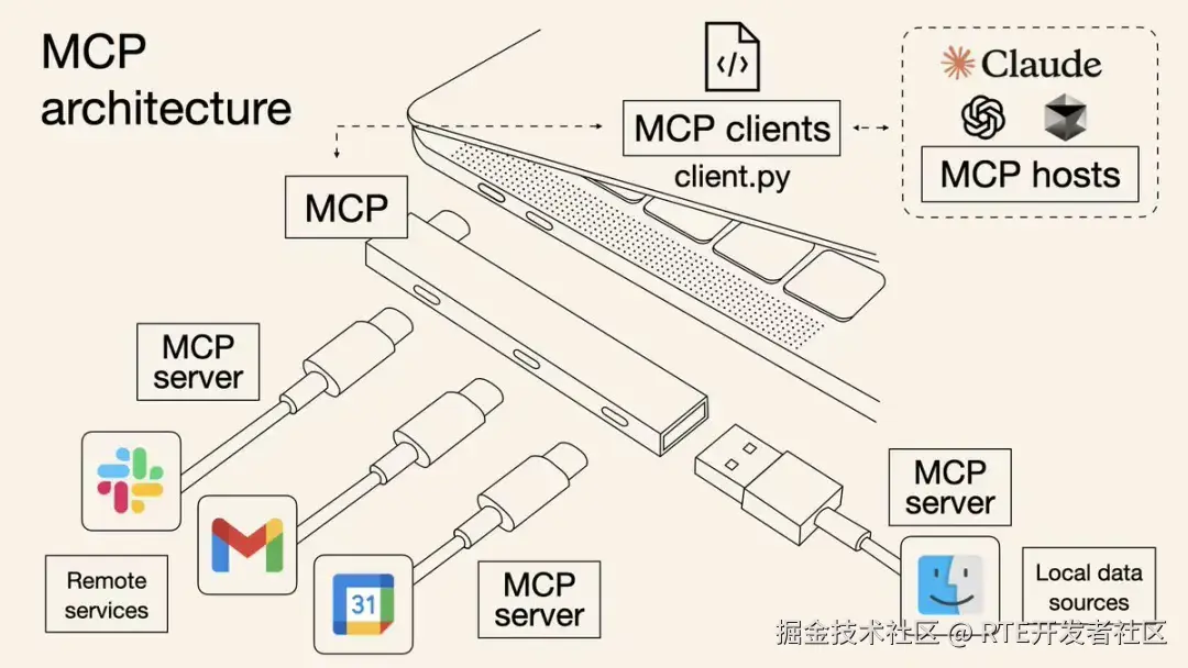 为了解决 AI 和第三方系统的数据交互问题,Anthropic(Claude背后的公司)开发了一种模型上下文协议(MCP)。