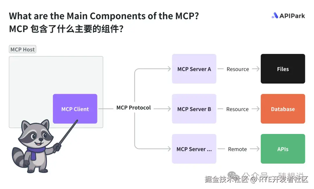 根据 MCP 协议的规定,在 MCP 协议中有以下组件:
