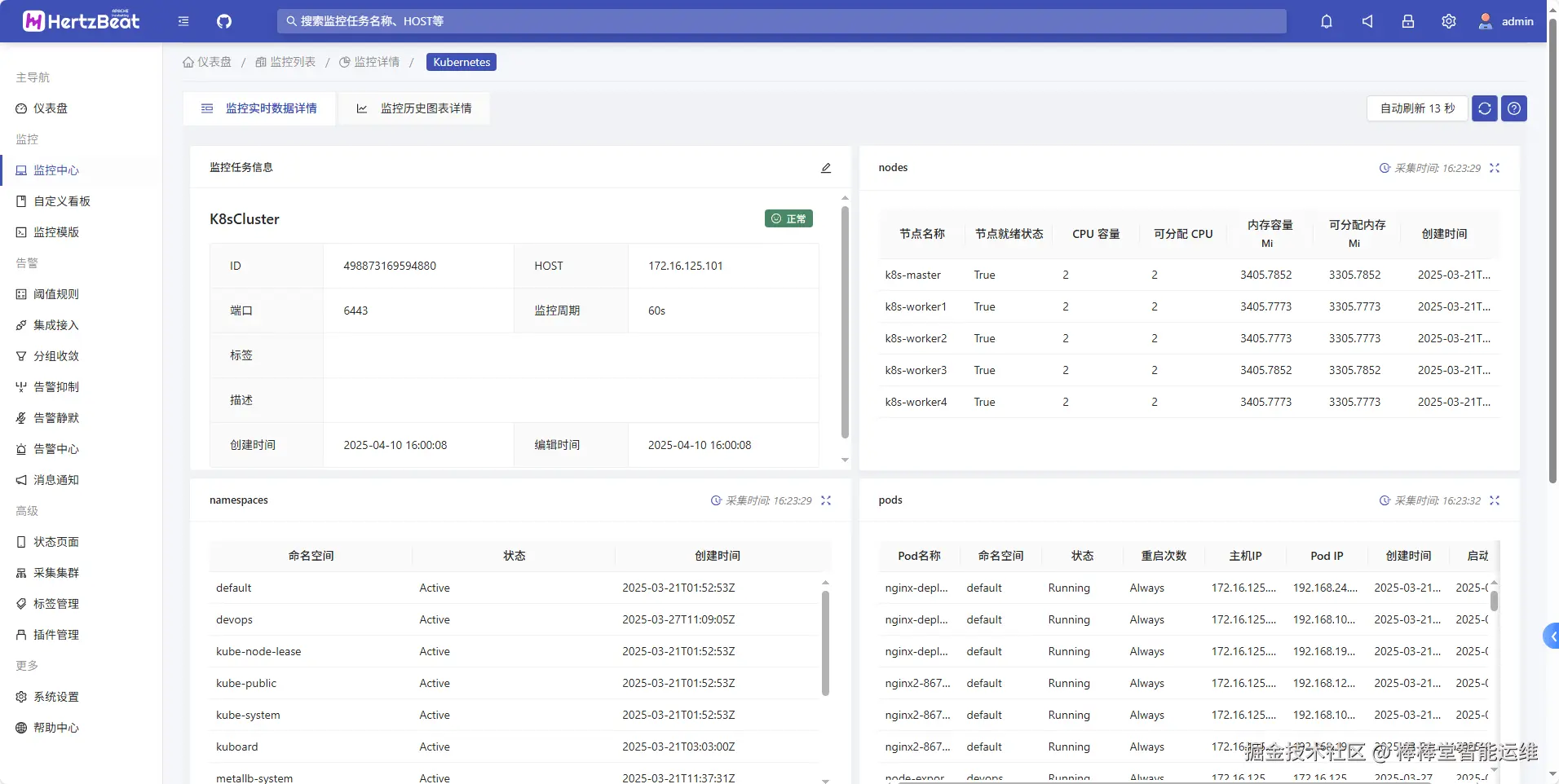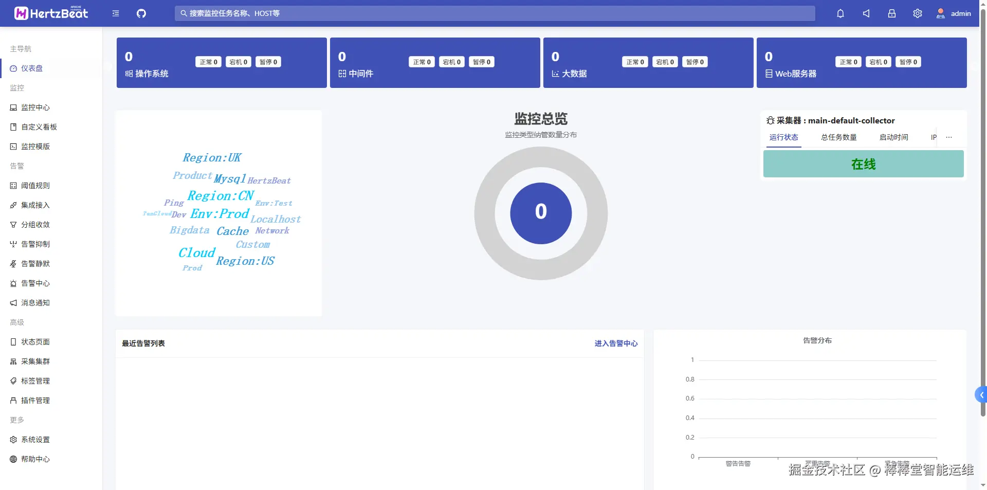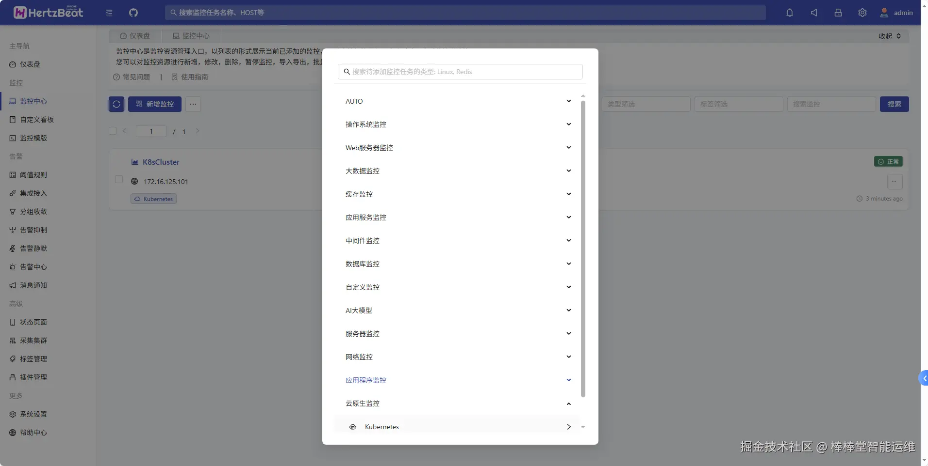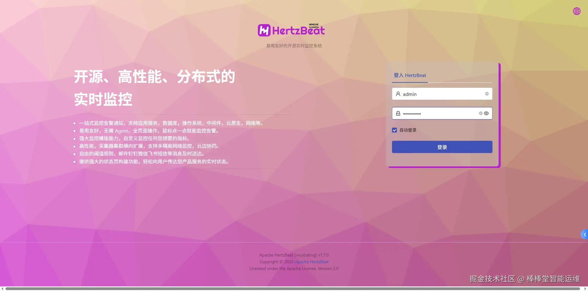 浏览器访问http://172.16.125.107:1157/,默认账户密码 admin/hertzbeat,如图9-8所示、9-9所示。