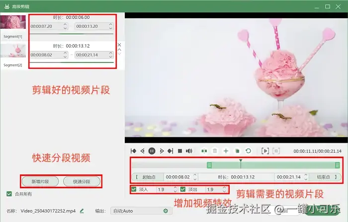 步骤3:录制完视频后,如果你还想给视频增加特效、剪辑一下视频什么的。可以点击 “高级剪辑” 选项,可以满足你的后期剪辑需求。