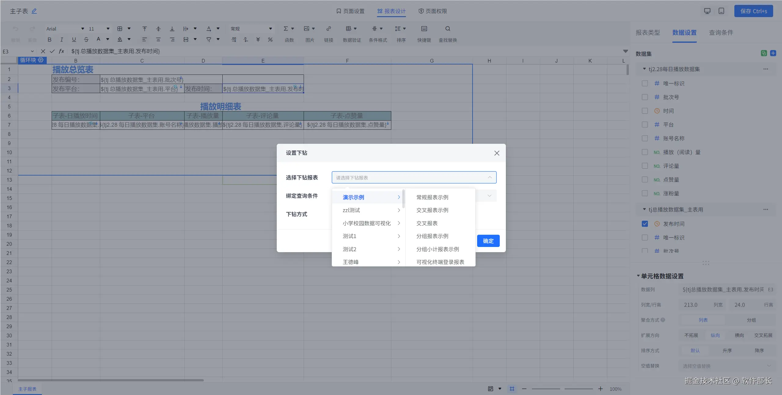 1、报表新增取消下钻的菜单按钮。