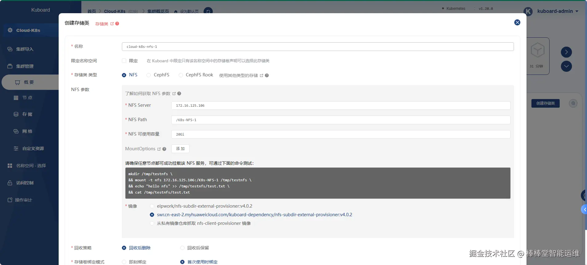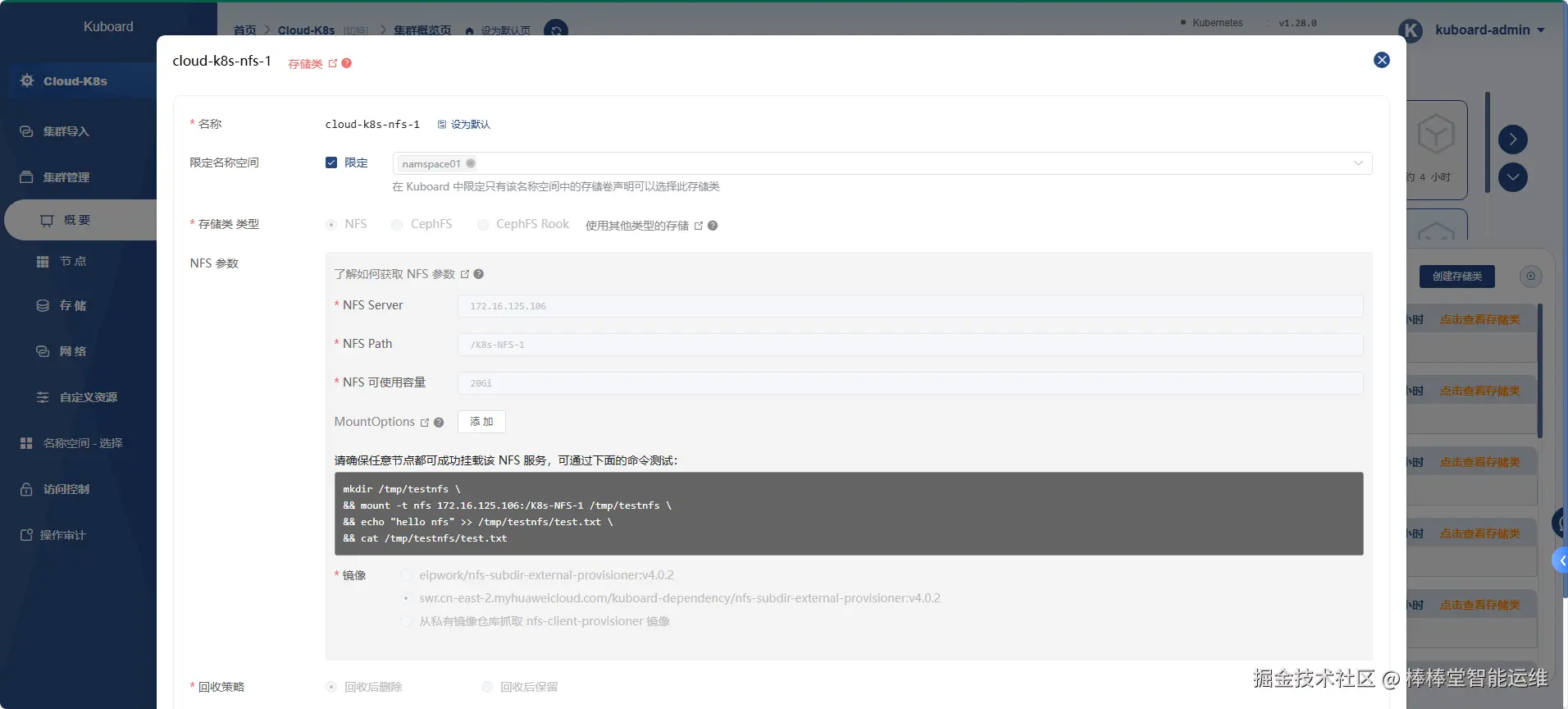 | 1 | cloud-k8s-nfs-1 | /K8s-NFS-1 | 20GB | 允许5个节点访问 |