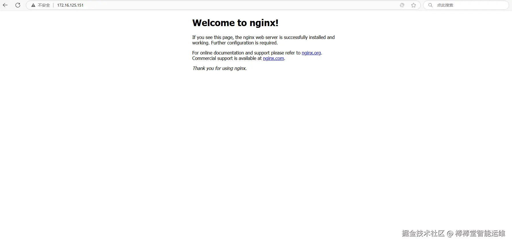使用浏览器访问http://172.16.125.151,可以看到nginx服务默认页,如图8-15所示。
