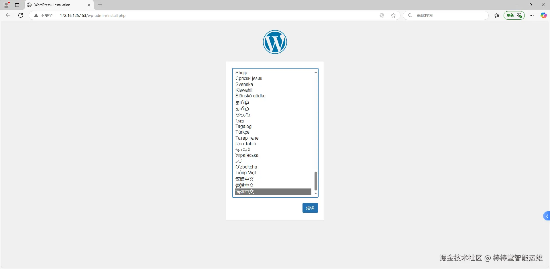 (6)初始化WordPress。浏览器访问http://172.16.125.153,按照提示安装WordPress,如图8-29、8-30所示。