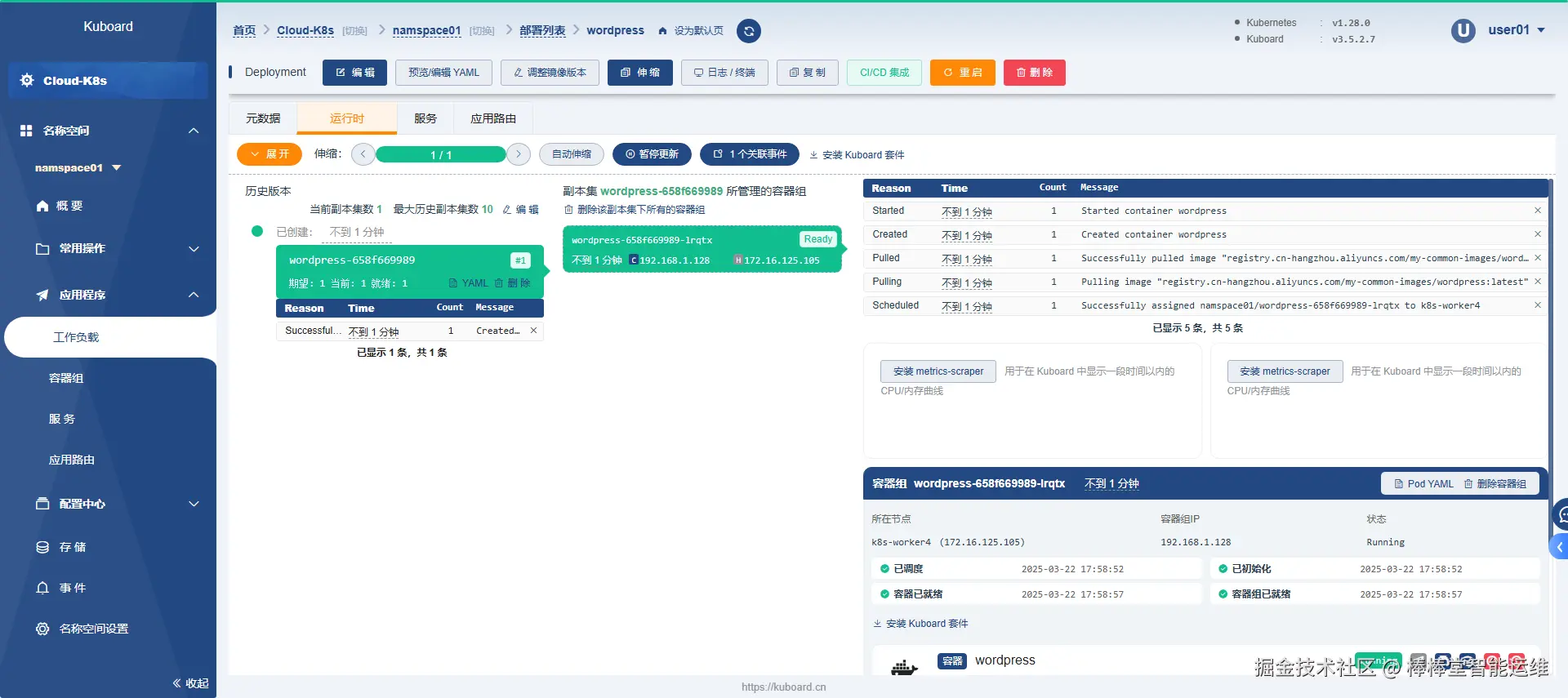 (3)保存并应用,待成功创建wordpress工作负载,如图8-26所示。
