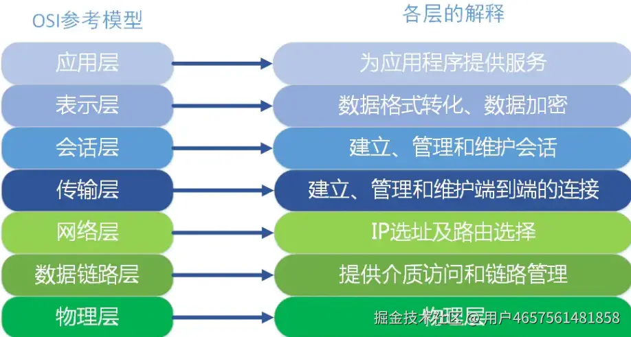 - 应用层(Application Layer):为用户提供应用服务,包括网络服务和应用程序之间的交互,例如电子邮件、文件传输、远程登录等。