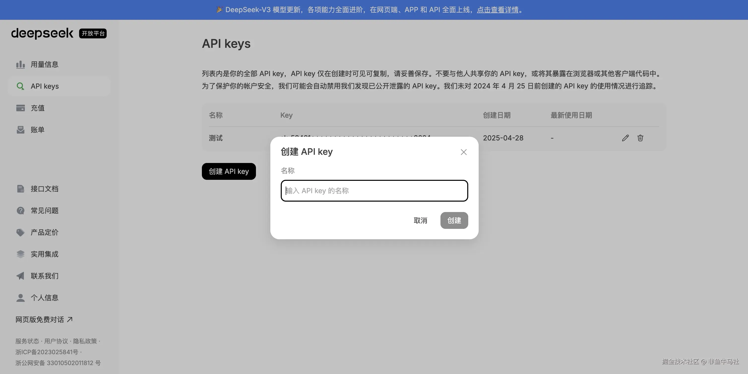 - 登录DeepSeek开放平台:platform.deepseek.com/api_keys