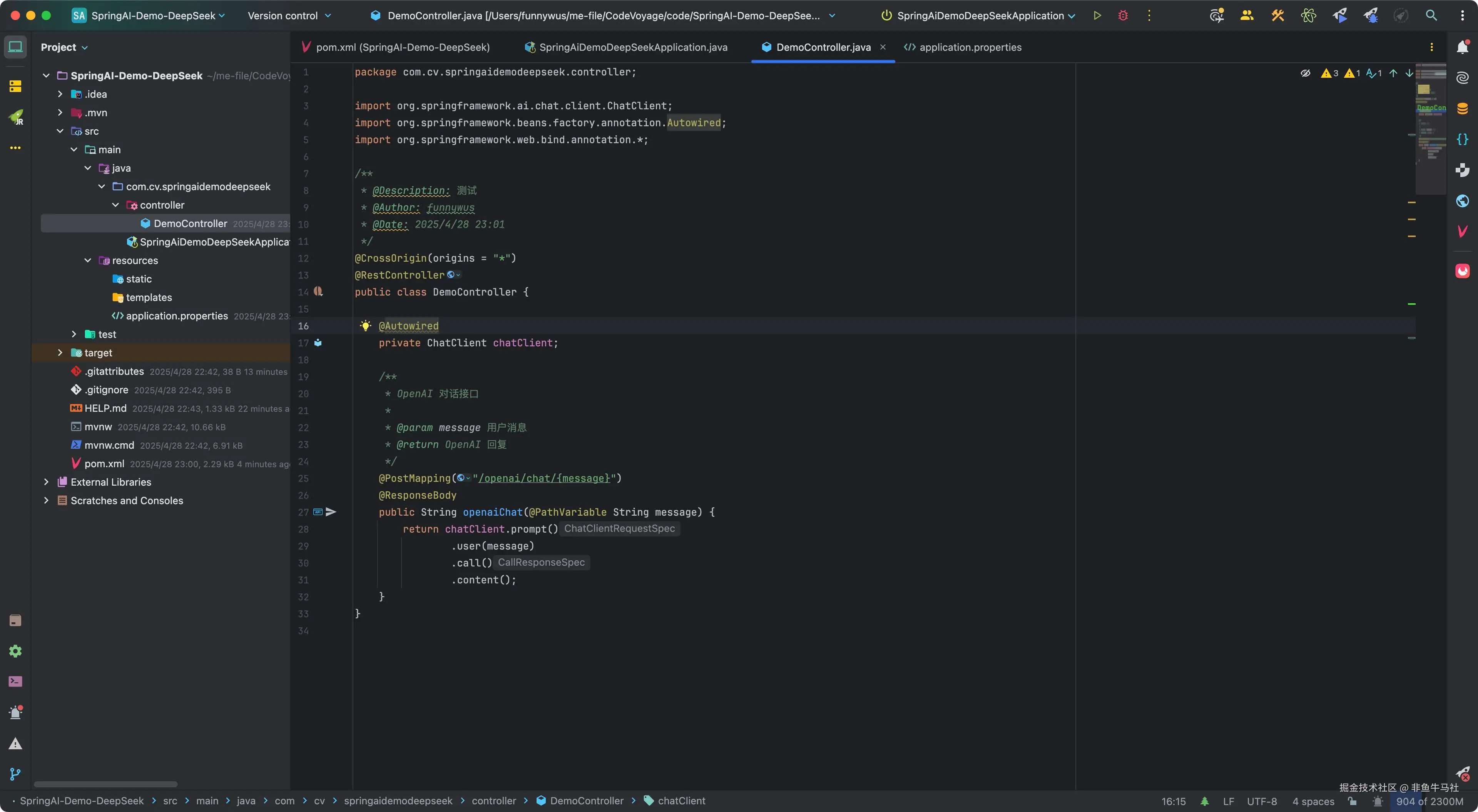 Spring官方推出的Spring AI,极大地降低了AI应用在Java生态中的集成门槛;而DeepSeek作为新兴的强大大模型平台,也迅速赢得了开发者的青睐。