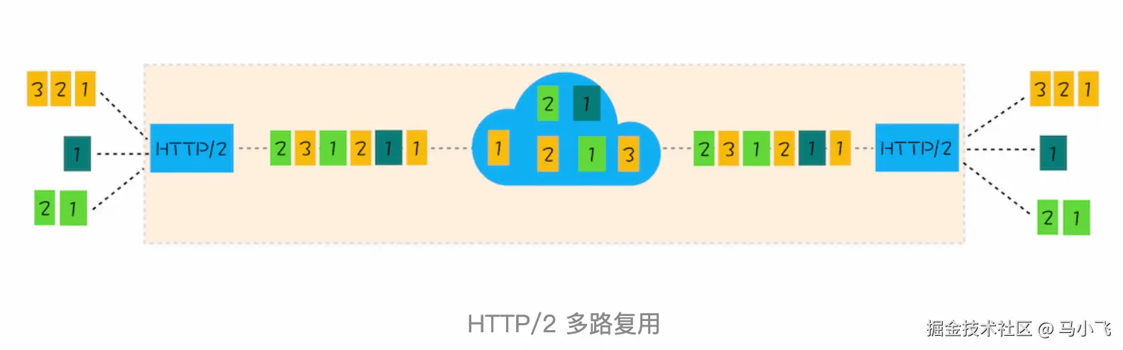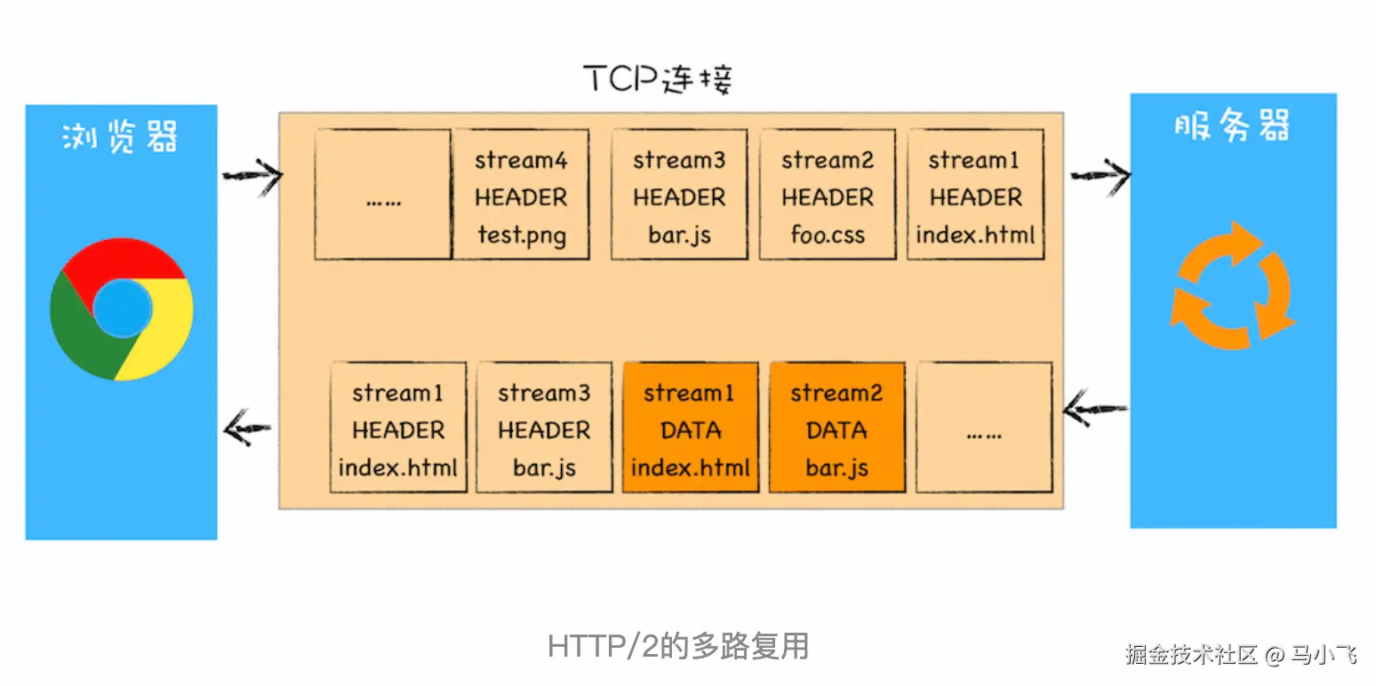该图就是HTTP/2 最核心、最重要且具有颠覆性的 多路复用机制