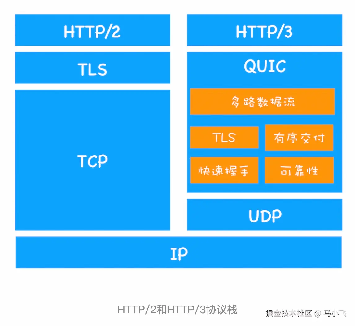 | 1.1 -> 2 | 二进制协议/多路复用 | TCP层队头阻塞 |