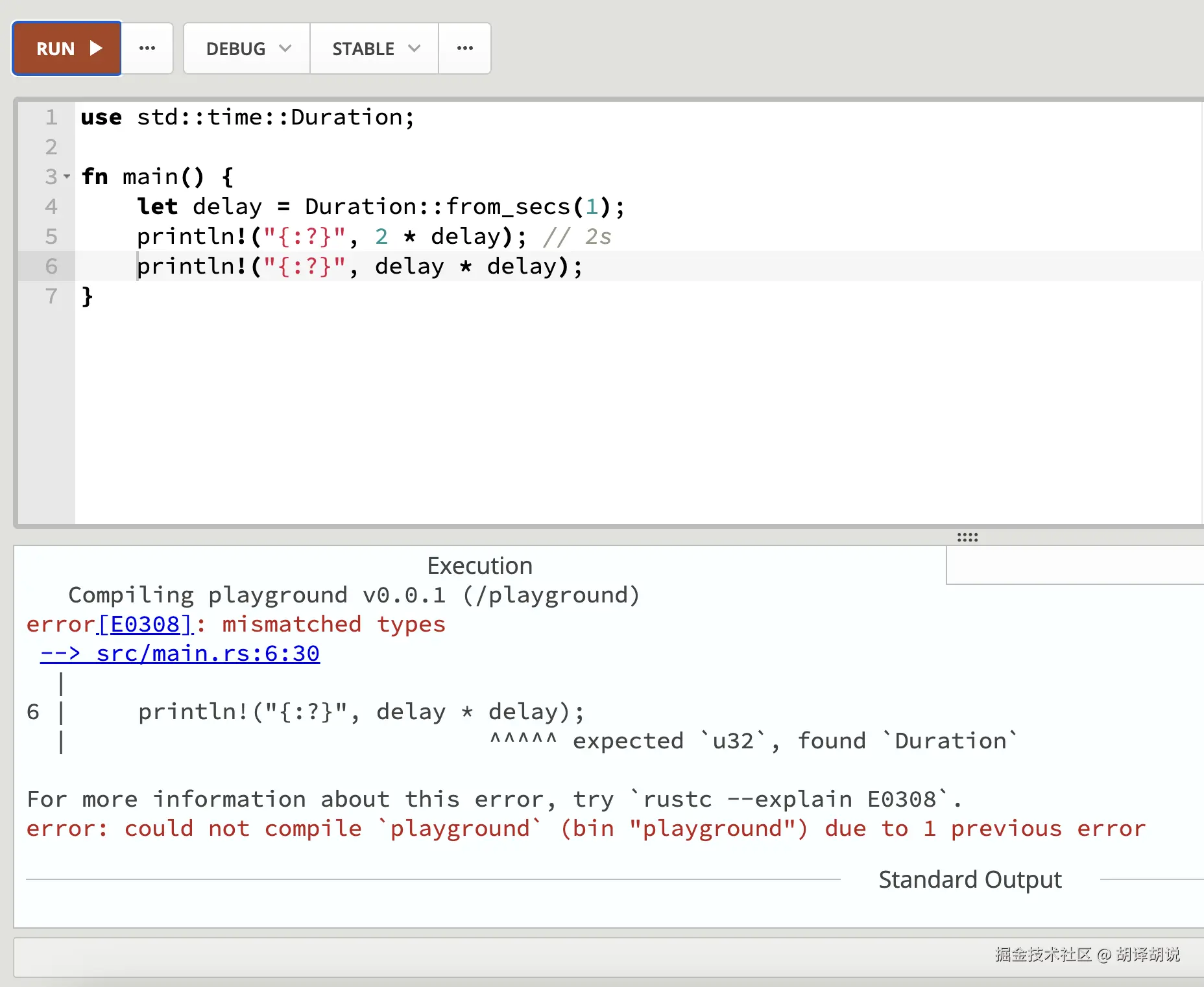顺带一提,Rust 就严谨得多。它通过泛型约束和操作符重载,确保 Duration 上的每一次计算都得有意义。