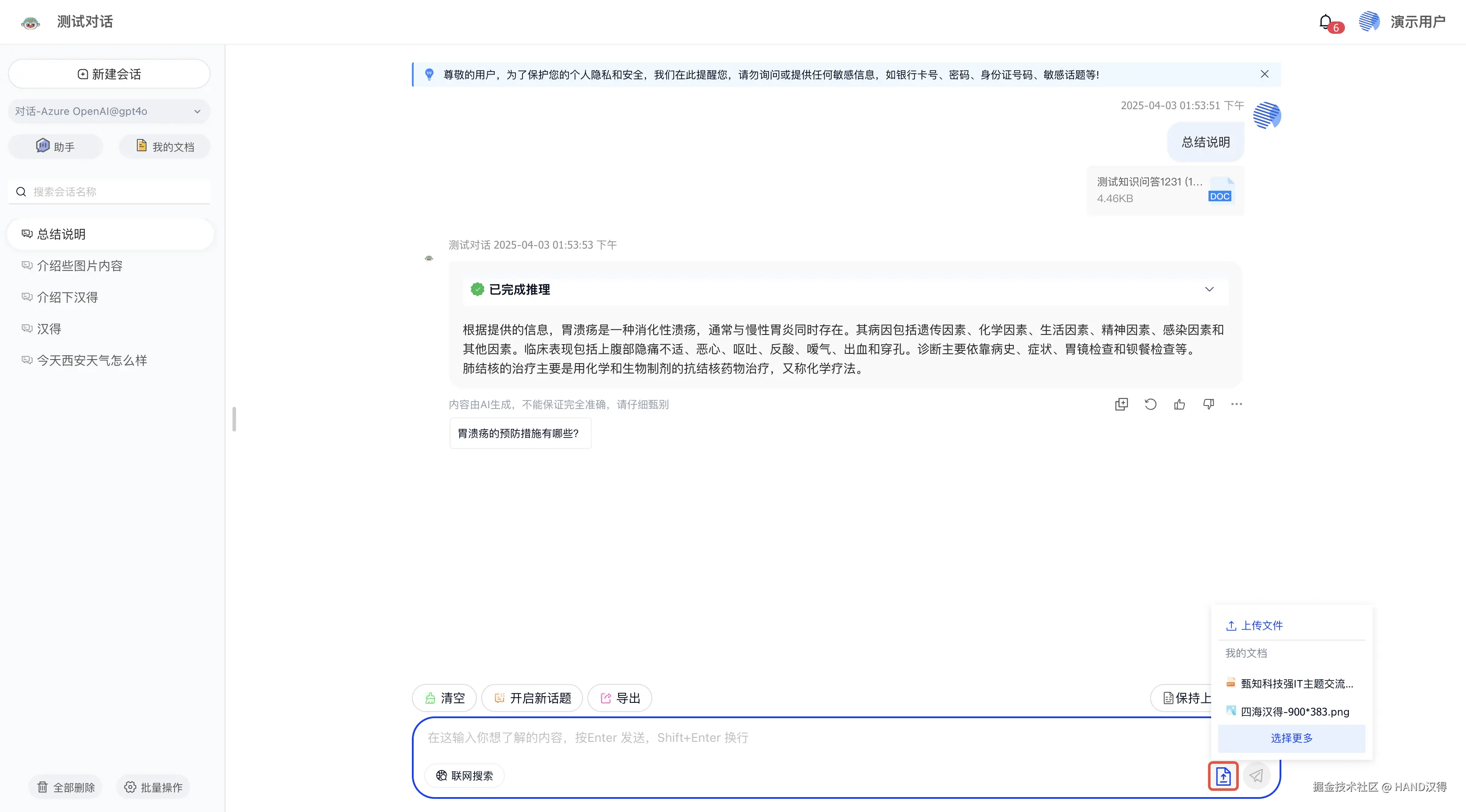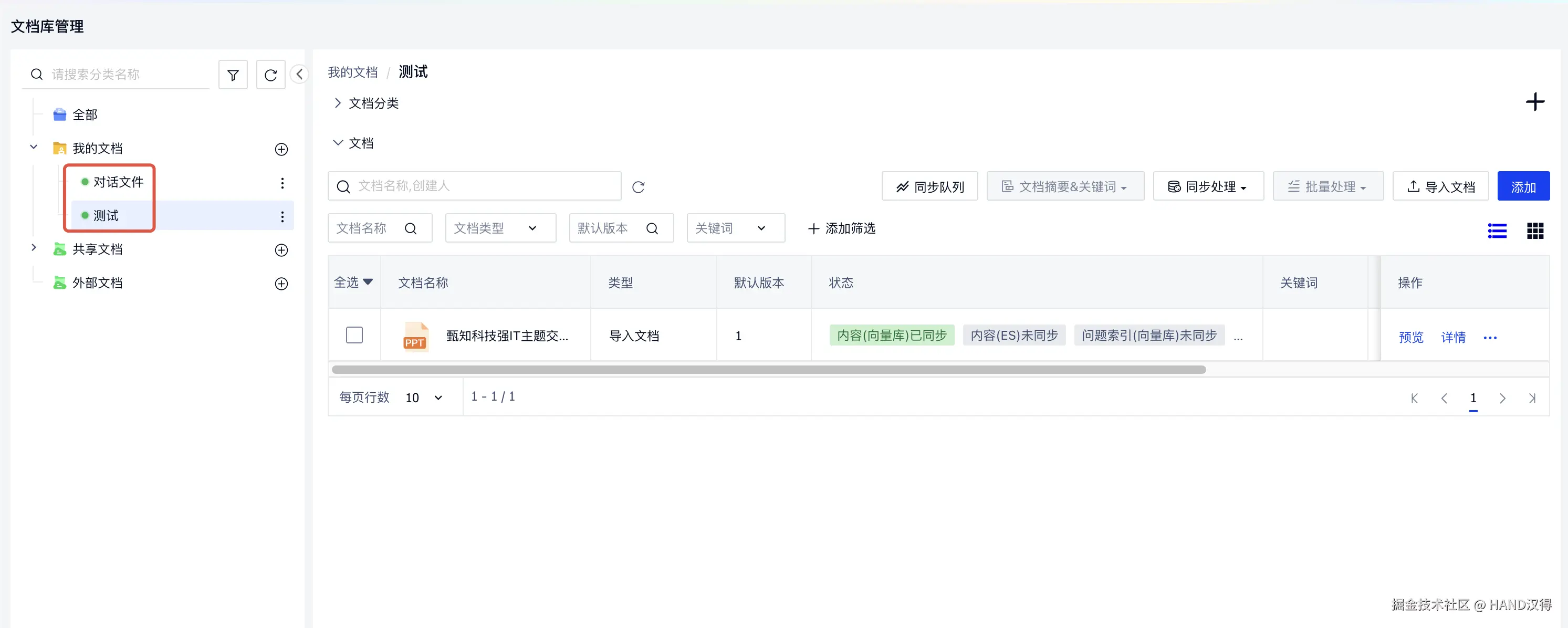 我的文档可以帮助用户管理个人上传文档,并提供可复用的文档对话交互能力。