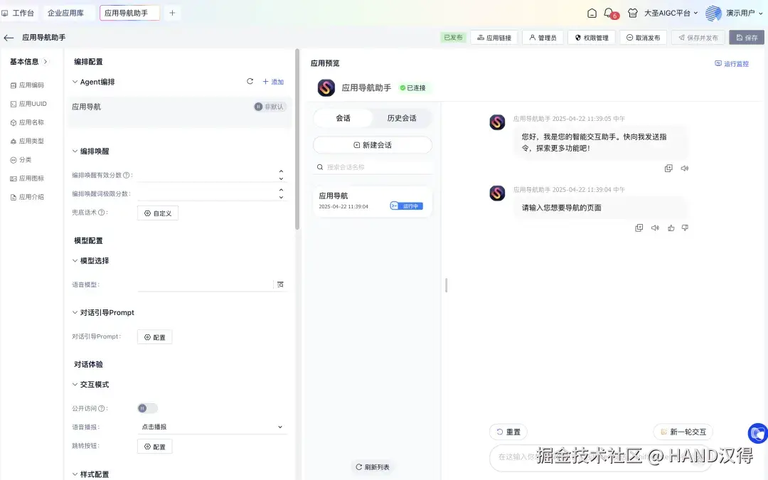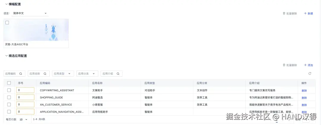1. 若您想体验试用 AIGC 产品,请登录开放平台open.hand-china.com/,在应用中心选择 汉得灵猿AI中台 进行试用。