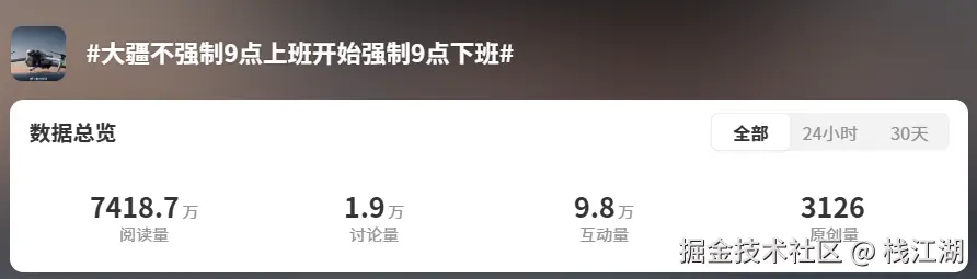前不久有则新闻冲上了热搜:“多家大厂强制到点下班不准加班”。而把这个热度带起来的就是大疆发布的“不强制9点上班开始强制9点下班” 。
