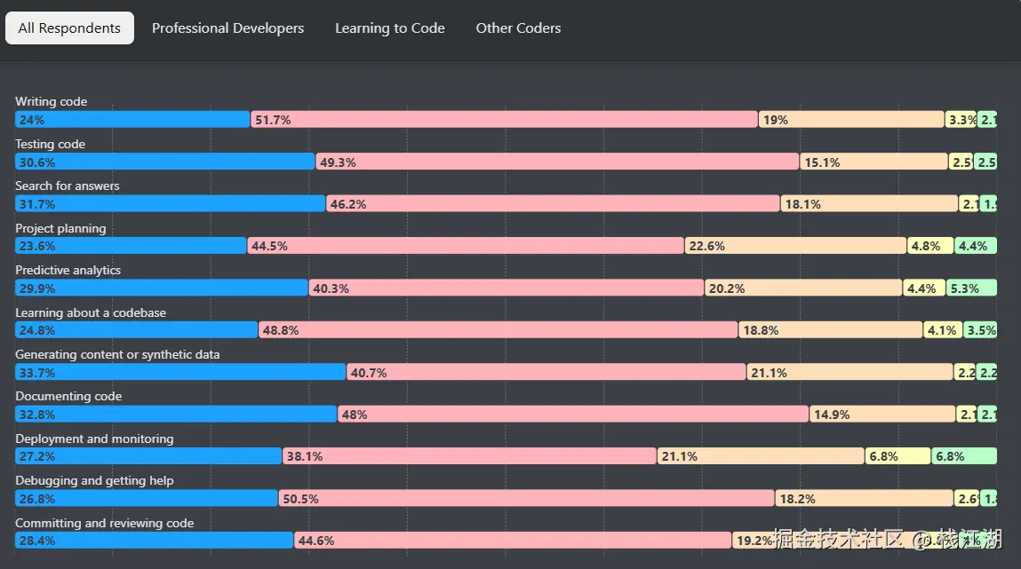 而效率的提升反而可以吸引大量的开发者,通过github的数据GitHub上生成式AI项目的贡献数量激增了59%,项目总数增加了98% 。全球开发人员正在利用当今的工具和模型远远超越代码生成。