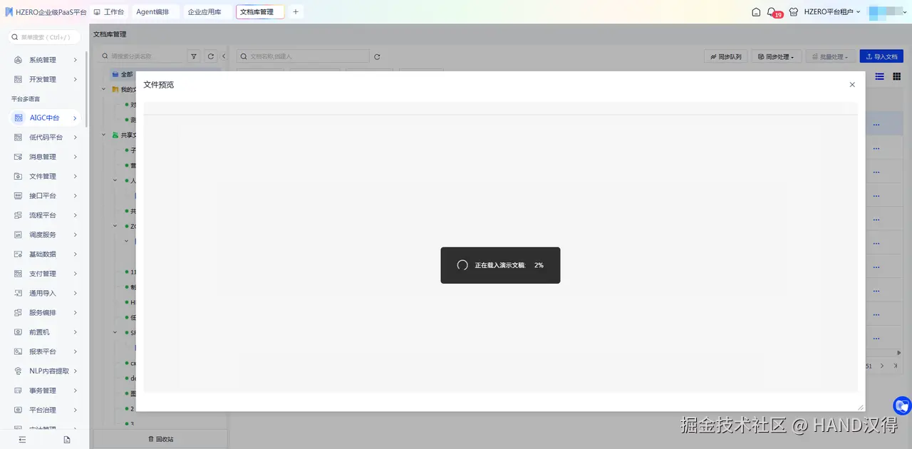 - 在“文档库管理”菜单下,点击文件预览,文件资源较大,需要等待载入