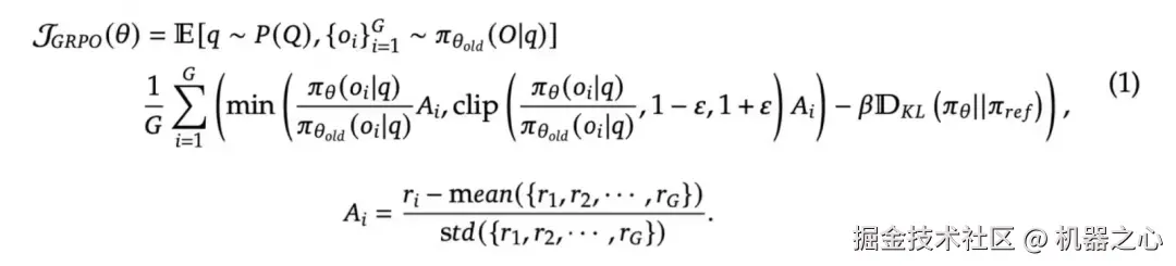 这里使用的是组相对策略优化算法(GRPO),该算法由 DeepSeek 提出,是近端策略优化算法(PPO)的一种变体。
