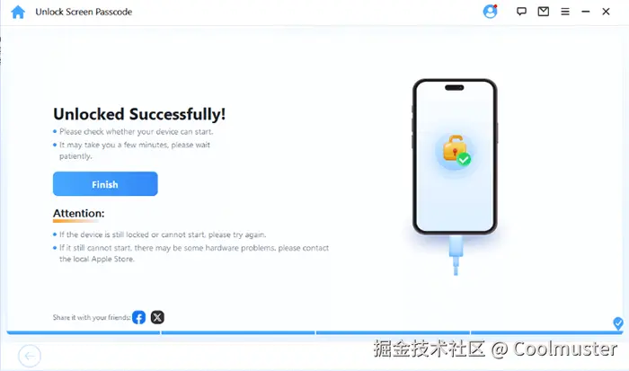 04只需几分钟,您的iPhone屏幕密码就会成功解锁。