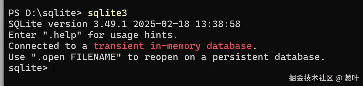 进入 D:sqlite3 运行sqlite3,出现以下版本信息,说明安装成功!