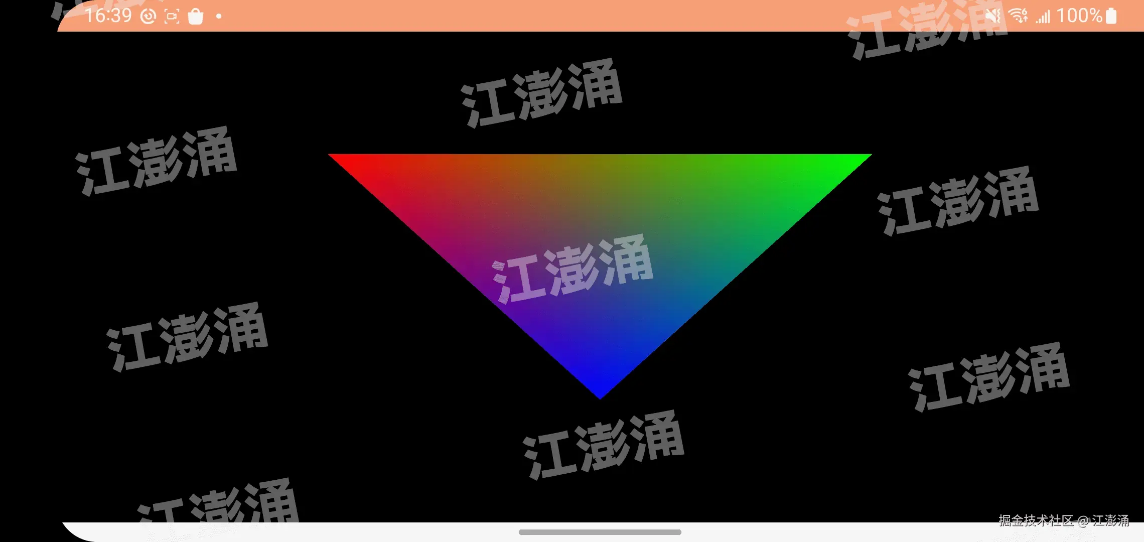 可以看到 getVertexShaderSource 和 getFragmentShaderSource 返回的是一开始编写的着色器。并且在 onInit 的时候获取了着色器中 in 和 uniform 属性的句柄,在 onDraw 的时候可以进行传值顶点坐标和顶点颜色,最后进行绘制。
