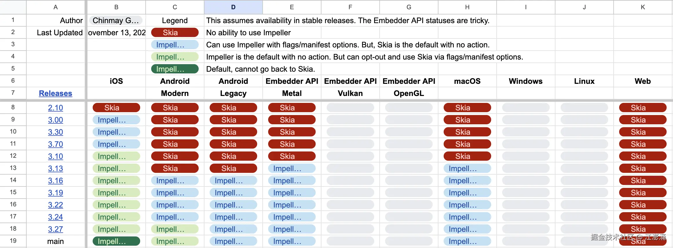 skia( github.com/google/skia ),google 开发的 2D 图形库,在 Flutter 早期版本中作为主要的渲染引擎,底层便有使用到 OpenGL ES 进行渲染。