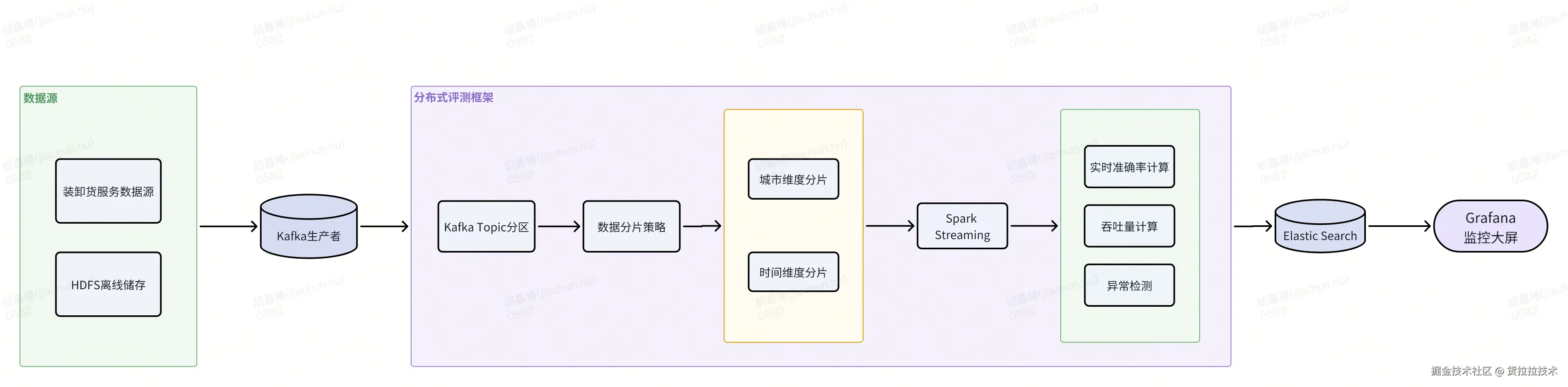 - 流式处理:采用Kafka+Spark Streaming实现实时指标计算