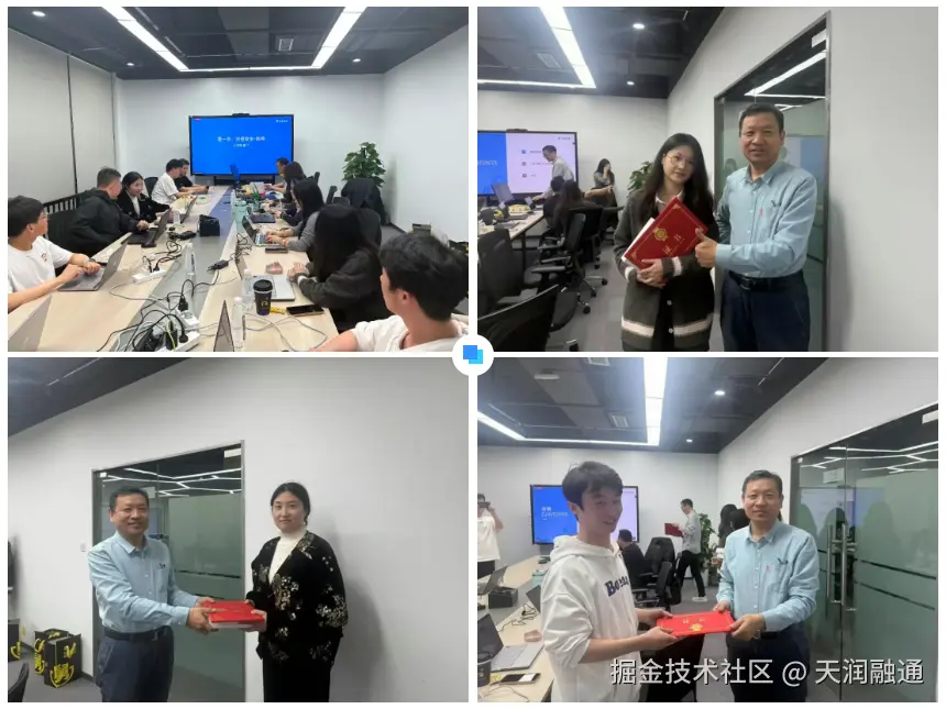 培训的最后阶段,学员们齐聚天润融通南京研发中心, 提交实操成果,导师们对学员们的实操成果进行1V1 的专业点评,并举行了第一期结业仪式, 为学员们颁发天润融通智能体工程师证书。